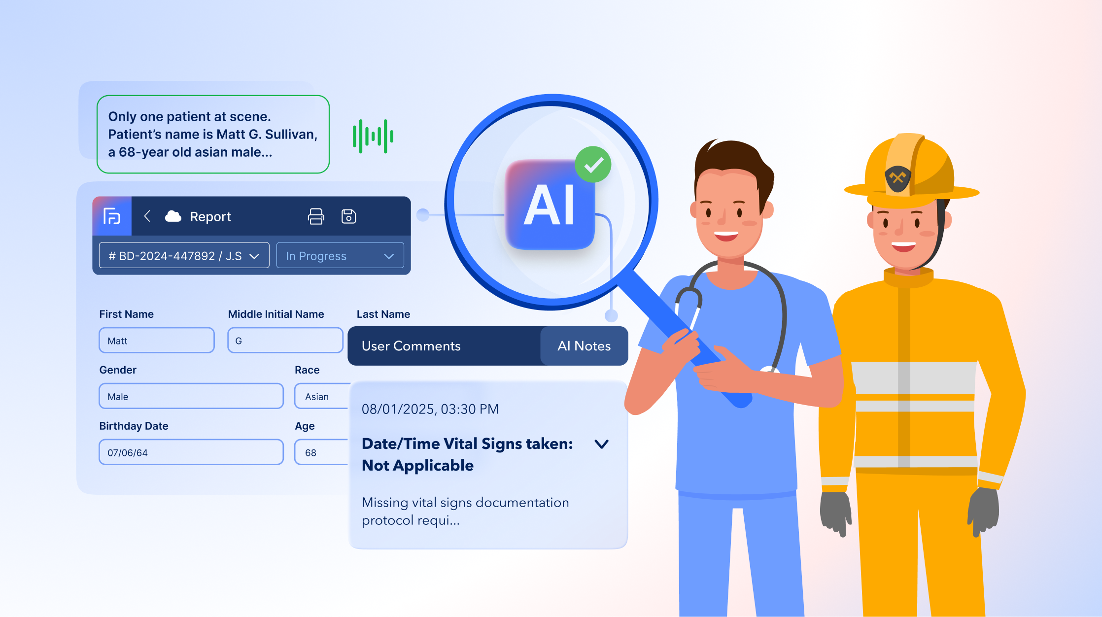 AI should go beyond basic transcription. A well-designed solution automatically populates fields, validates inputs, and improves accuracy while saving time. It should manage the complexity of mapping terminology to NFIRS, NEMSIS, or state compliance requirements, all while keeping providers in control of final documentation.